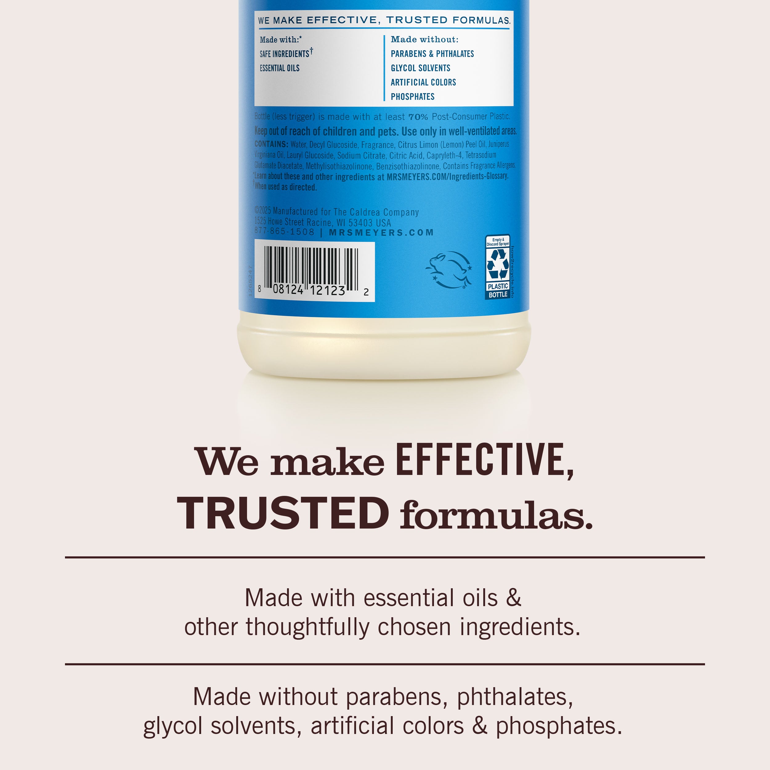 - TESTED & TRUSTED: Mrs. Meyer’s products are made with essential oils and other thoughtfully chosen ingredients that are cruelty-free and Leaping Bunny Certified.