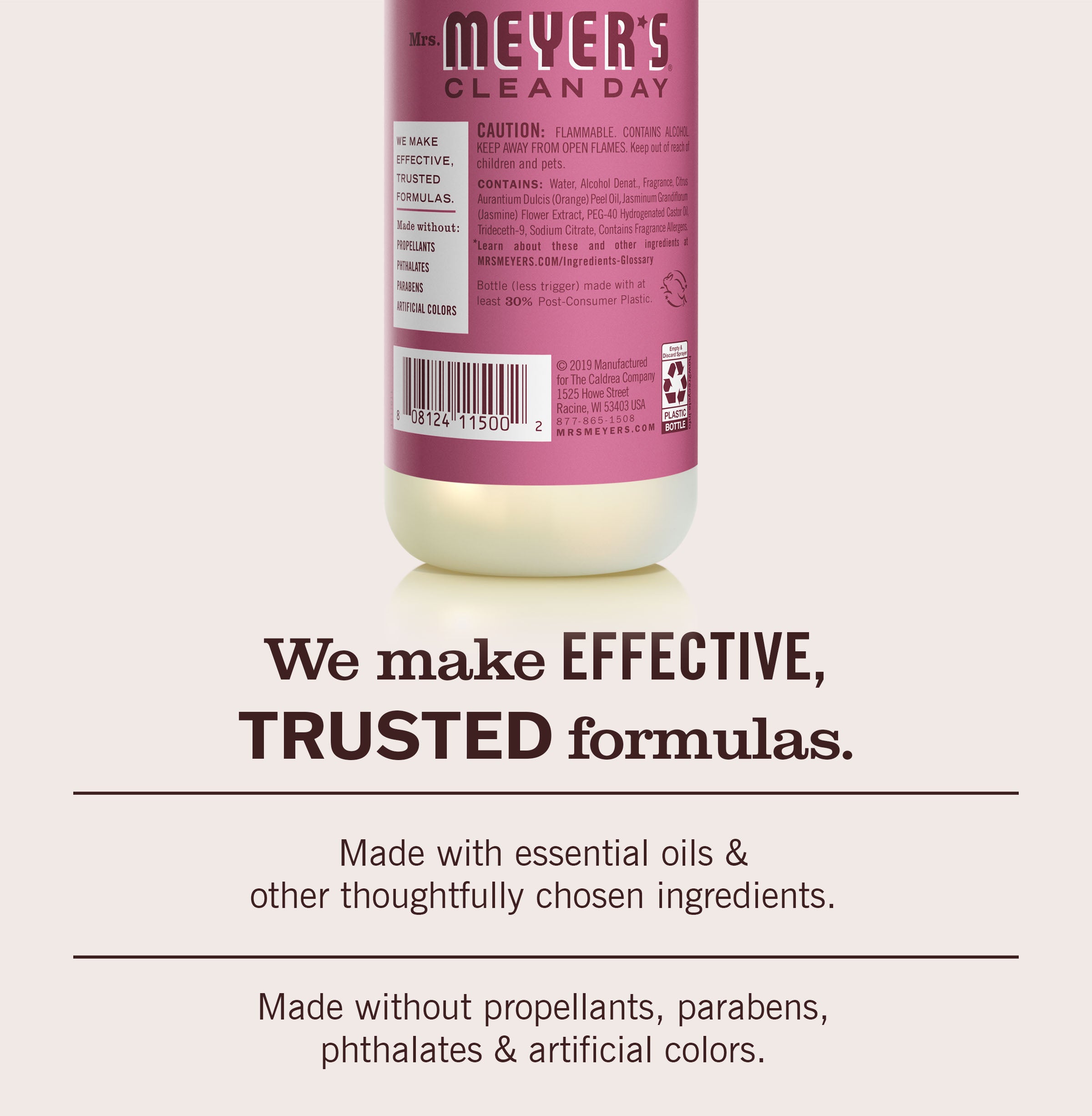 - TESTED & TRUSTED: Mrs. Meyer’s products are made with essential oils and other thoughtfully chosen ingredients that are cruelty-free and Leaping Bunny Certified.