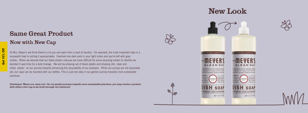 • There are certain practices we’re working on, like removing black plastic in our products. That’s because black plastic bypasses the recycling system and goes straight into the landfill. We’ve started to remove black plastic from our laundry and home cleaning and aim to do this across our entire product line by 2026.