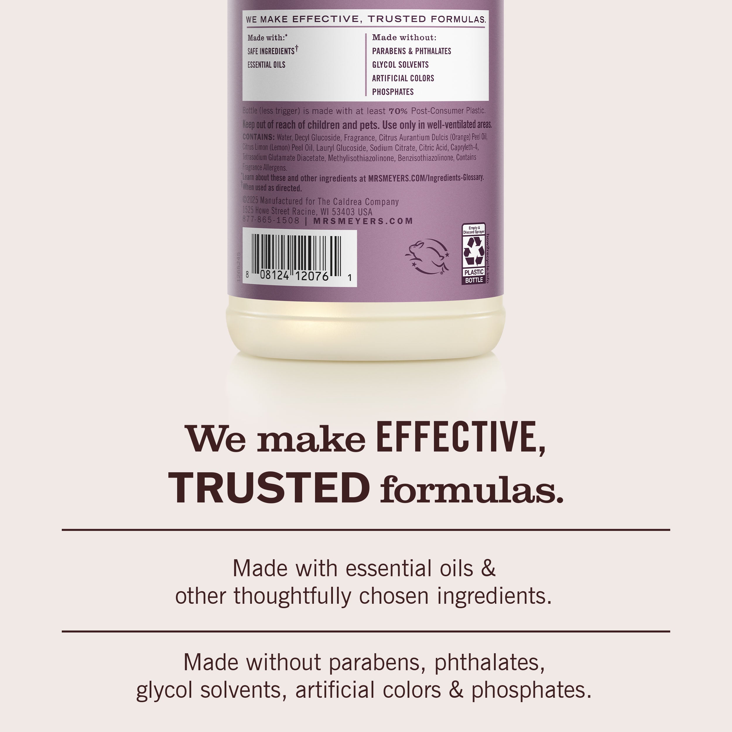 - TESTED & TRUSTED: Mrs. Meyer’s products are made with essential oils and other thoughtfully chosen ingredients that are cruelty-free and Leaping Bunny Certified.