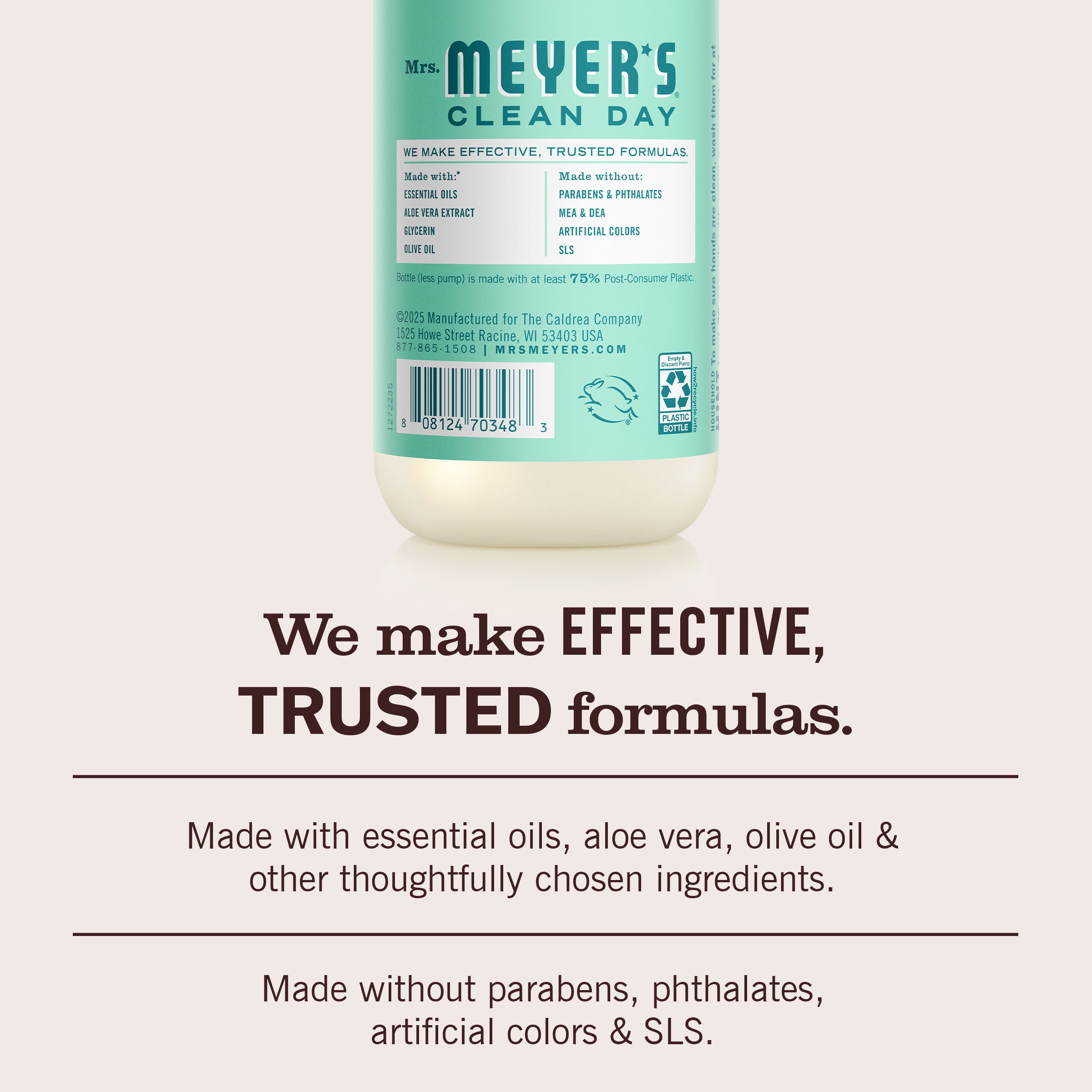 - TESTED & TRUSTED: Mrs. Meyer’s products are made with essential oils. aloe vera extract. olive oil. and other thoughtfully chosen ingredients that are cruelty-free and Leaping Bunny Certified.