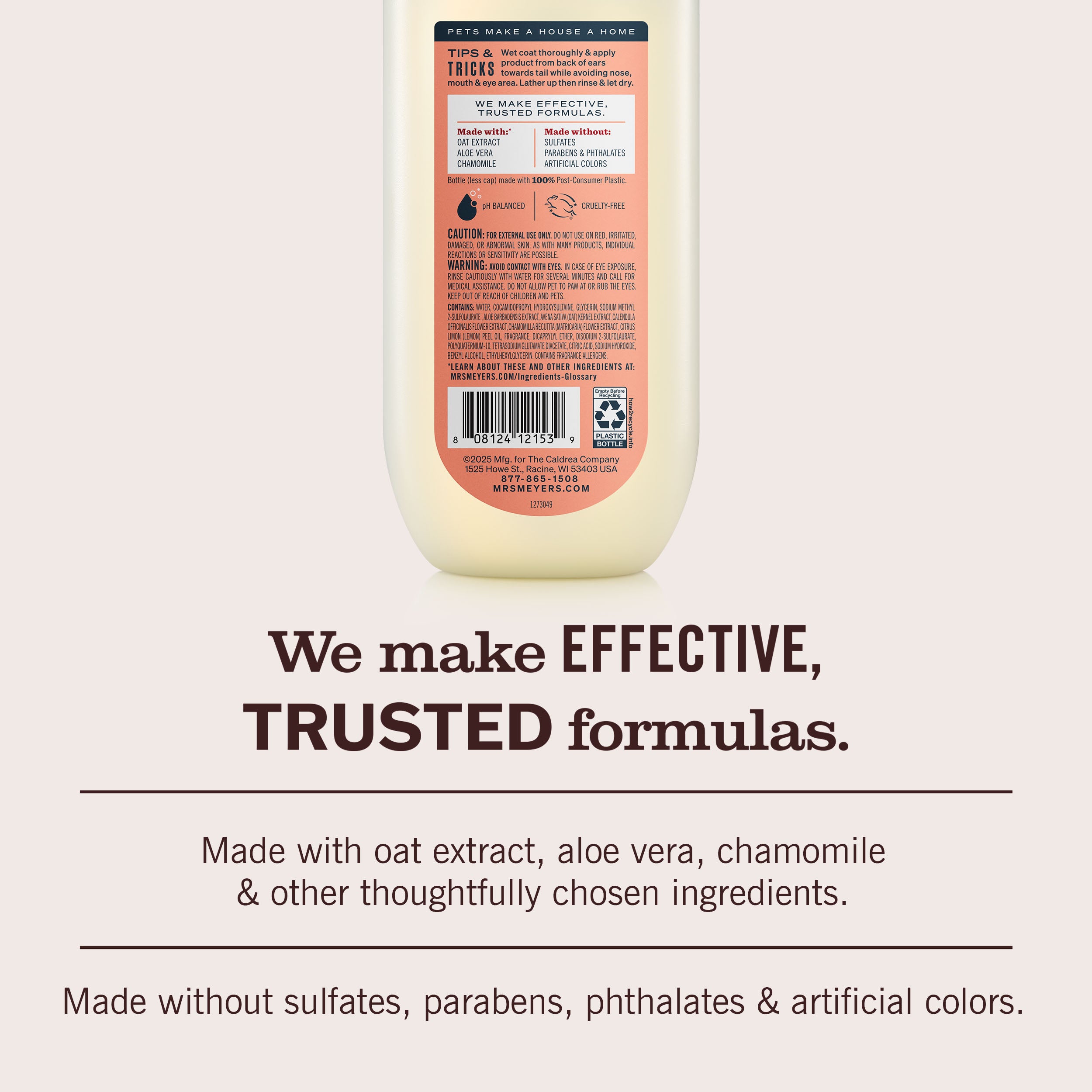 ? MADE WITH FUNCTIONAL INGREDIENTS: This Mrs. Meyer’s for Pets grooming product is made with glycerin. oat extract. aloe. chamomile. and other thoughtfully chosen ingredients that are cruelty-free and Leaping Bunny Certified.